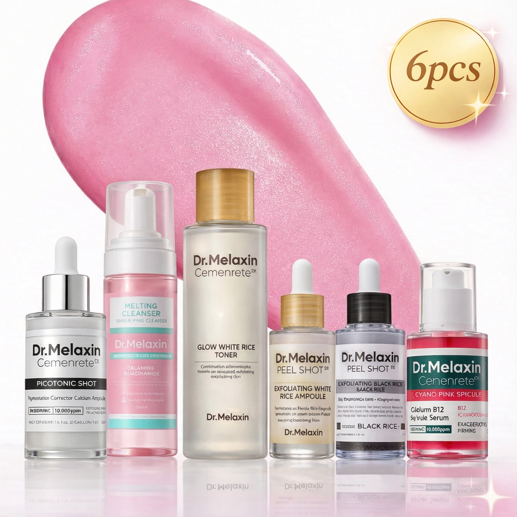 The Dr. Melaxin Collagen Boost Set is meticulously crafted to enhance your skin's natural radiance. With its advanced formula, it targets uneven skin tone and provides deep hydration, ensuring your skin looks and feels revitalized.